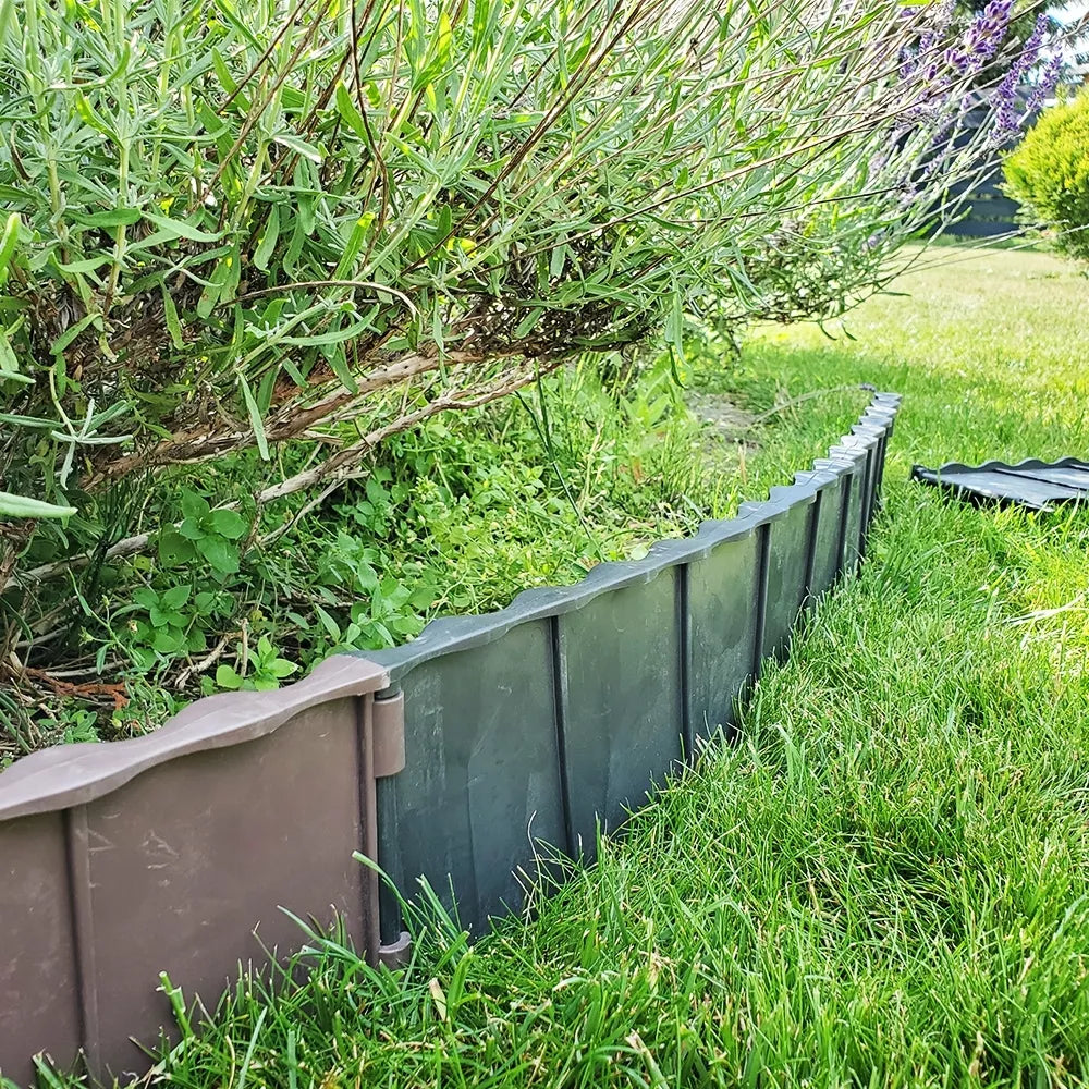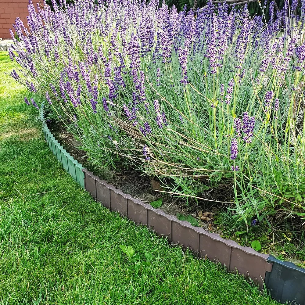 Matmenys 120 x 620 x 20 mm. Jungiasi vienas su kitu. Plastikinis atitvaras skirtas atskirti skirtingas zonas (vejos, gėlyno, akmenų) soduose, daržuose. Greitai ir lengvai montuojamas, nereikia specialių įrankių.