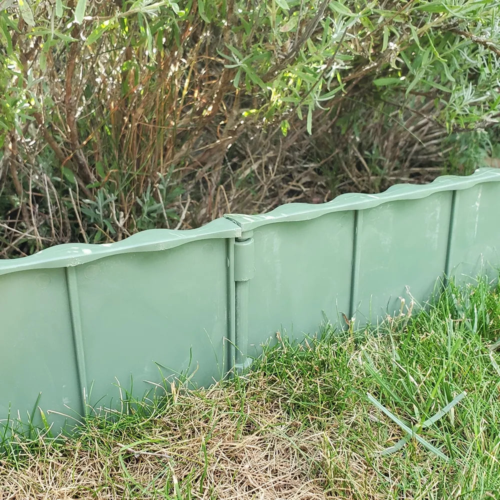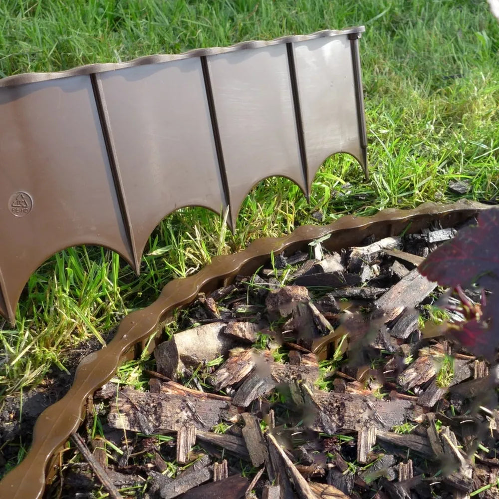 Matmenys 120 x 620 x 20 mm. Jungiasi vienas su kitu. Plastikinis atitvaras skirtas atskirti skirtingas zonas (vejos, gėlyno, akmenų) soduose, daržuose. Greitai ir lengvai montuojamas, nereikia specialių įrankių.