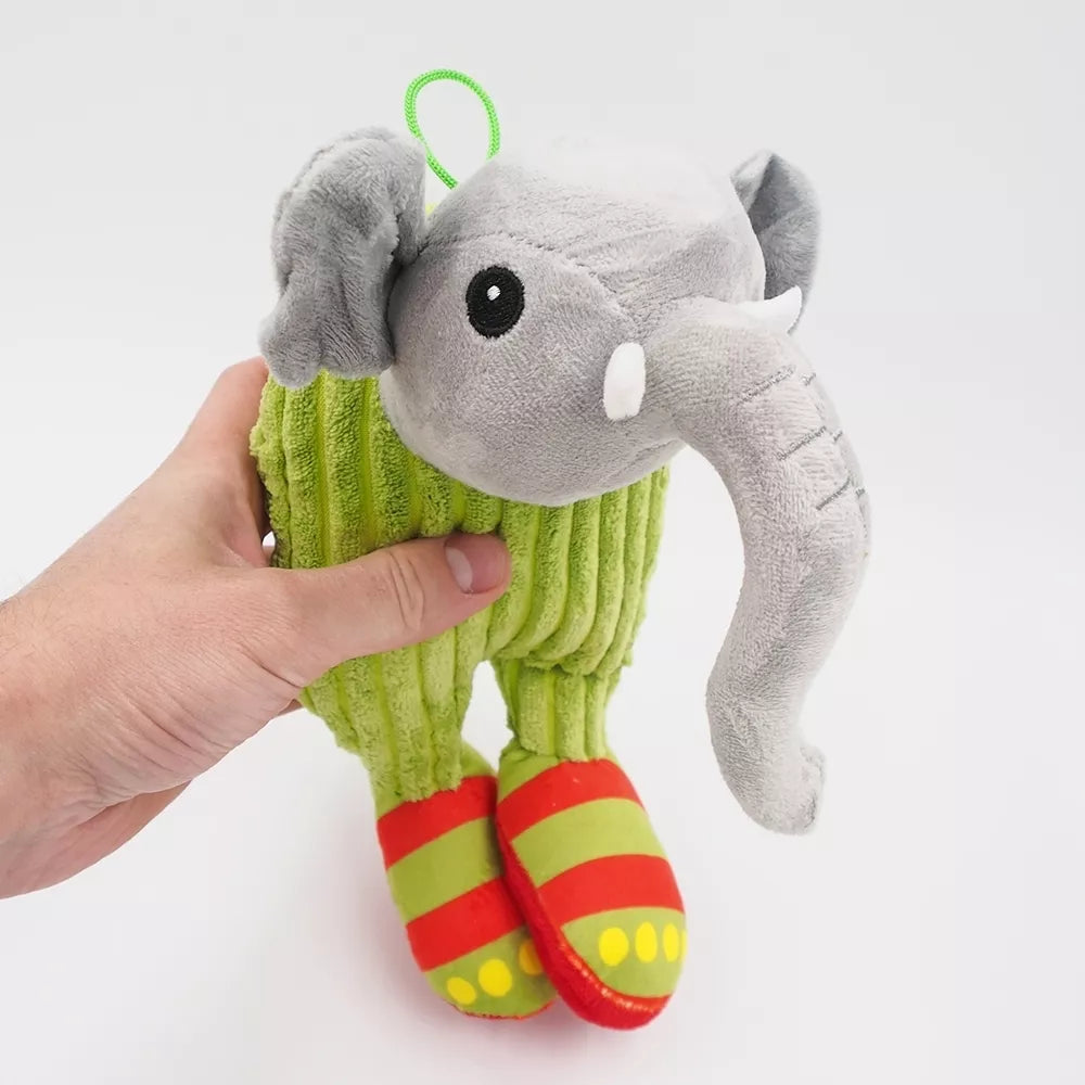 Minkštas, išskirtinio dizaino pliušinis drambliukas su kabančia straubliuota nosimi