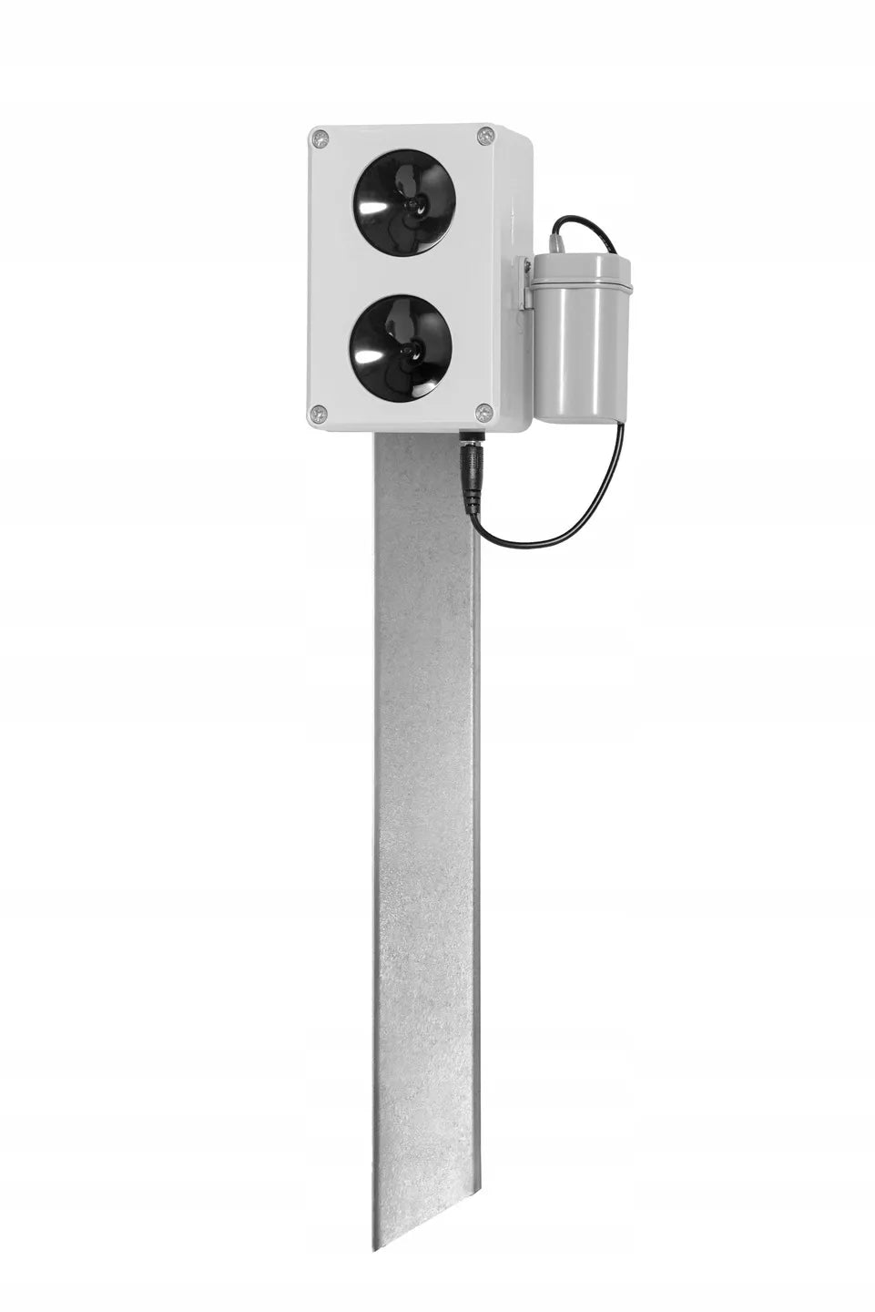 Su įmontuotu magnetu (magnetas tvirtai laiko net esant stipriam vėjui, sniegui ar lietui)Maitinimas: 6V DC (nepridedamas maitinimo blokas 220V) arba 4xAA elementai (nepridedami).Maitinimo laido ilgis: 150 cm.Srovės suvartojimas: 10mAMatmenys 80x120x25mmUltragarso veikimo kampas iki 180 laipsnių.Ultragarso diapazonas iki 2500 m2Darbinė temperatūra: nuo -30 iki +70 laipsniųPrietaisas neveikia šunims ir katėms (ultragarso emisija viršija girdimąjį diapazoną)Pagamintas EU.Pagrindinės savybės:
