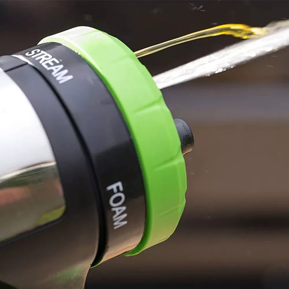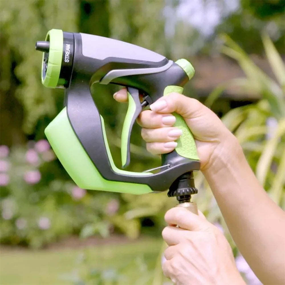 Purškimo pistoletas su dozatoriumi paruošimui, pagamintas iš patvarios ir smūgiams atsparios medžiagos - ABS. Galimybė reguliuoti srautą ir putojimo lygį rankenėlėmis. Pistoletas turi galimybę sklandžiai reguliuoti srauto tipą naudojant besisukantį antgalį.