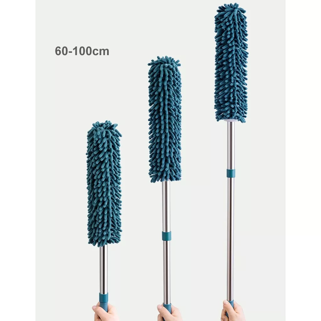 Teleskopinis dulkių šepetys, kurio ilgis nuo 60 iki 100 cm.Tai leidžia patogiai pašalinti nešvarumus sunkiai pasiekiamose vietose.Šepetėlis pagamintas iš mikropluošto, kuris puikiai surenka dulkes.Mikropluošto medžiagą galima išardyti ir nuimti nuo rankenos.Specifikacija: