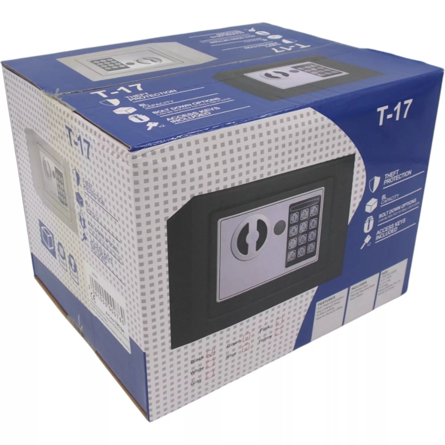 Patikimas metalinis seifas T-17 – saugus sprendimas pinigams, dokumentams, juvelyrikai ir kitiems vertingiems daiktams laikyti. Seifas turi elektroninę kodinę spyną su skaičių klaviatūra bei atsarginį raktą, todėl prieigą prie turinio galima užtikrinti net ir pamiršus kodą.