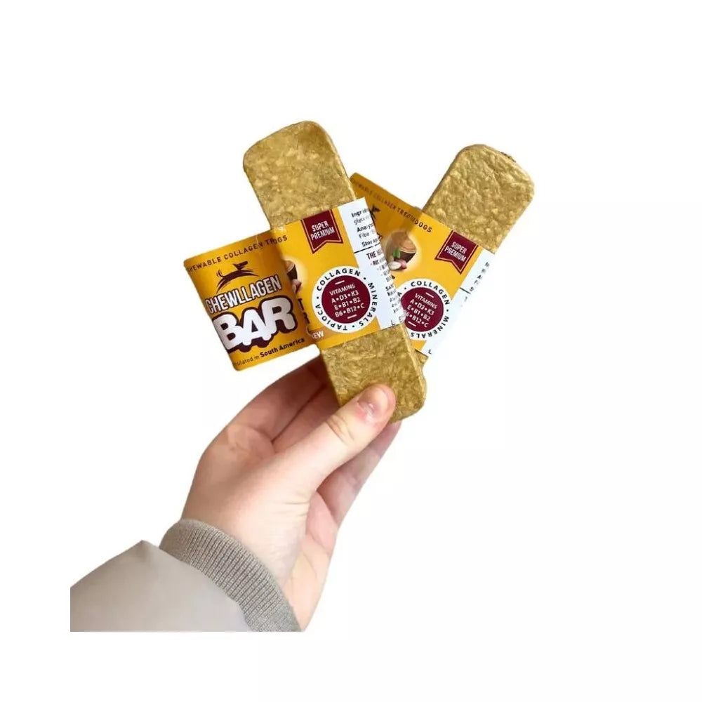 CHEWLLAGEN BAR yra kietas skanėstas, skirtas sąnarių sveikatai palaikyti, judrumui skatinti ir bendrai savijautai gerinti, nes suteikia aukštos kokybės kolageno, kuris yra būtinas jungiamojo audinio, pavyzdžiui, sąnarių, odos ir sausgyslių, būklei palaikyti. Skanėsto sudėtyje taip pat yra hidrolizuoto kolageno, vitaminų, mineralų ir glikemiją kontroliuojančios tapijokos.