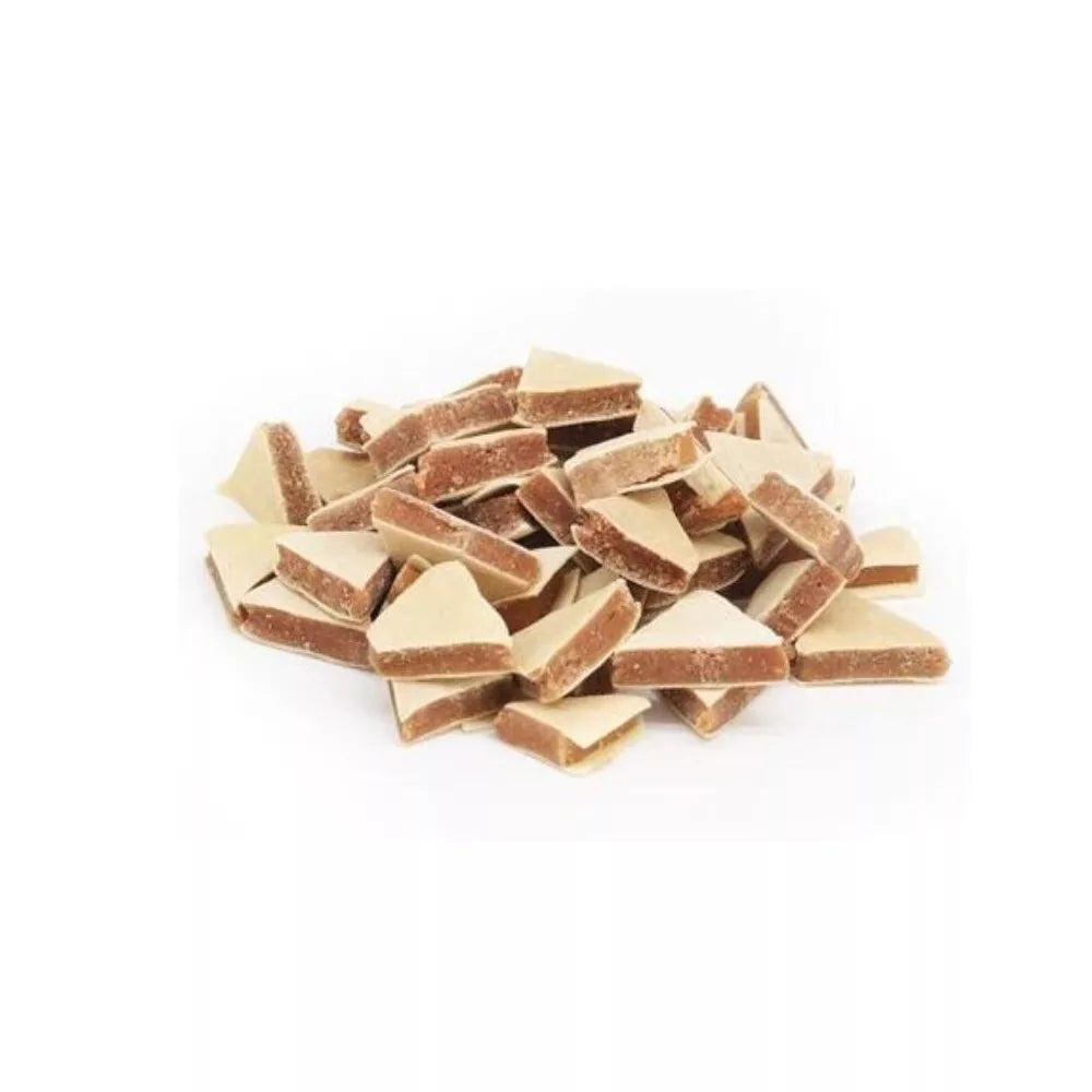 Praktiškas dydis: trikampiai gabalėliai lengvai dalijami ir patogiai naudojami dresūros metu.