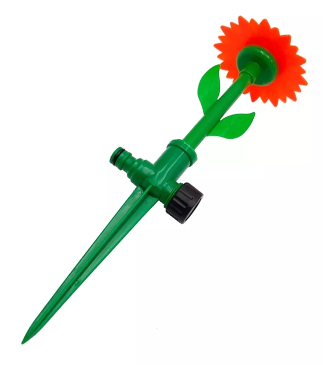 Automatinis gėlių formos sodo purkštuvas. Tvirtas pagrindas (į žemę įsmeigtas strėlės antgalio pagalba) neleidžia purkštuvui apvirsti veikiant vandens slėgiui. Didelis purškimo antgalis įrenginio viršuje. Labai paprasta naudoti, tereikia prijungti žarną ir atsukti vandenį. Sukurta sodo žarnai su 1/2 antgaliu.