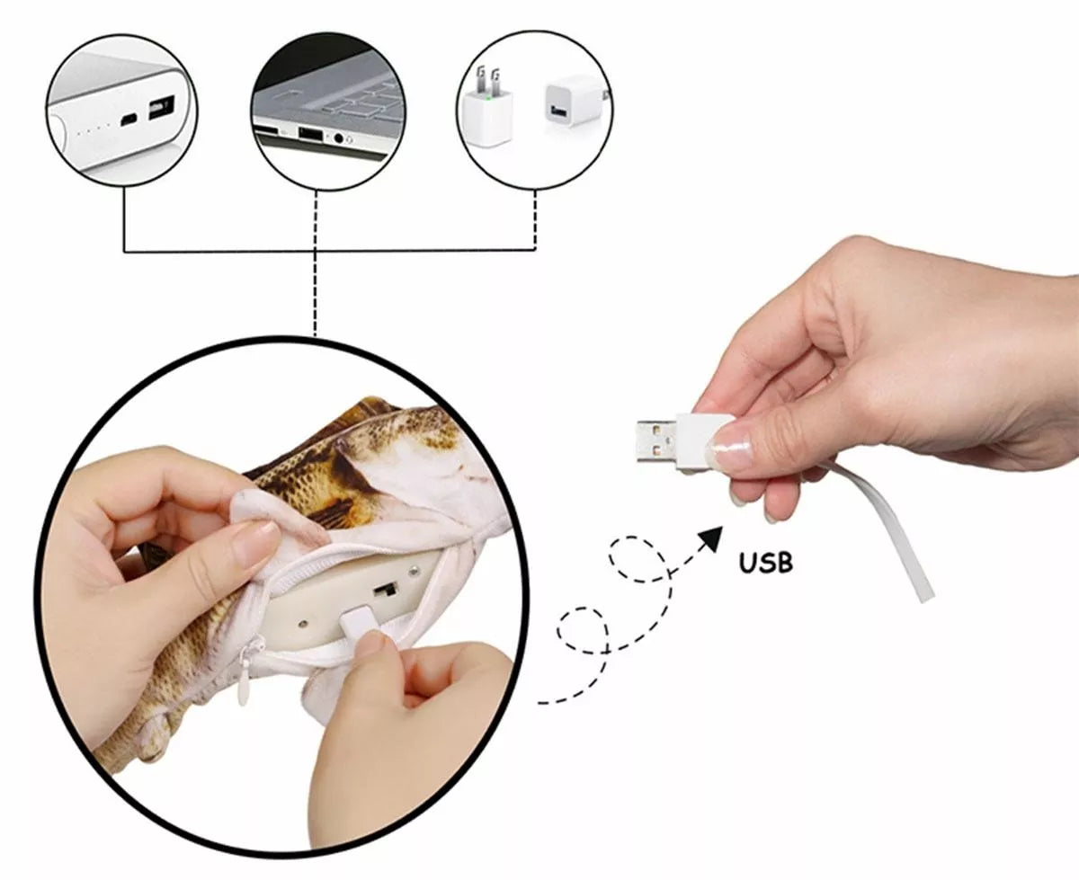 Šokinėjanti žuvis - kačių žaislas.Puikiai imituoja gyvą žuvį.Pagaminta iš minkštos, saugios medžiagos.Maitinamas iš įmontuotos įkraunamos baterijos.Galima skalbti išardžius viršutinę dalį.Medžiaga: medvilnė + pliušasMaitinimas: įmontuota įkraunama baterijaFizinis įjungimo / išjungimo jungiklis„MicroUSB“ prievadas įkrovimuiIlgis: 26 cmSpalva: kaip parodyta paveikslėlyje