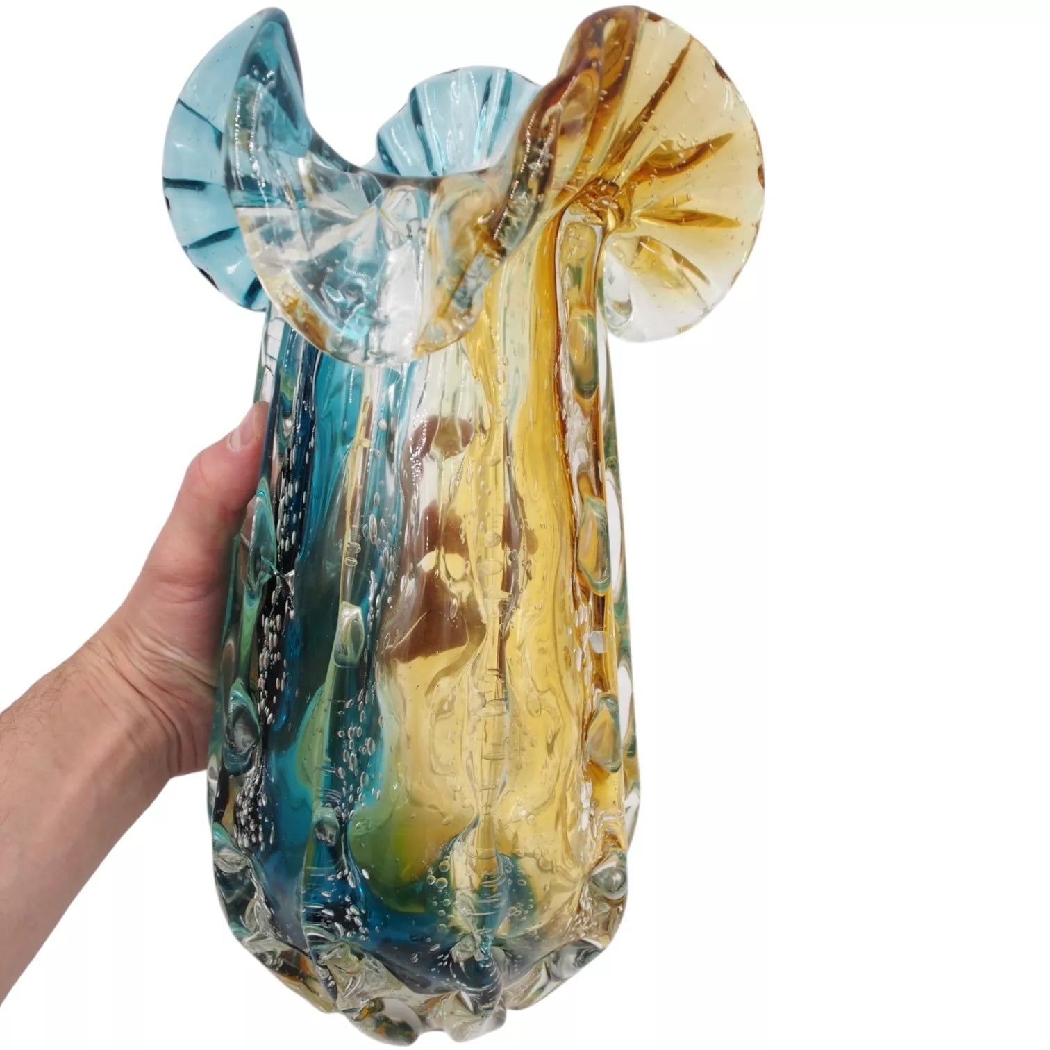 Spalvota rankų darbo stiklo vaza, 24×27 cm