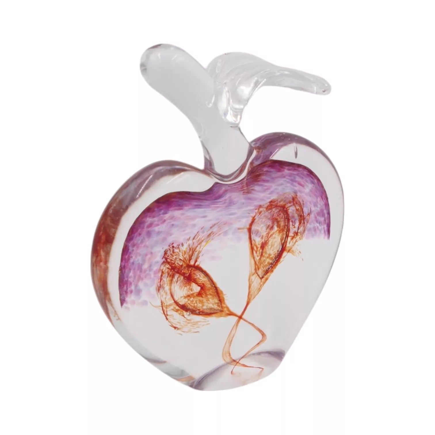 Išskirtinio dizaino Forma Lumo stiklinė dekoracija „Obuolys“ – tai elegantiškas ir simboliškas interjero akcentas. Skaidrus stiklas su viduje plūduriuojančiais violetiniais ir rusvais intarpais bei subtiliai formuota lapelio formos rankenėle suteikia gaminiui išraiškingumo bei meniško charakterio.