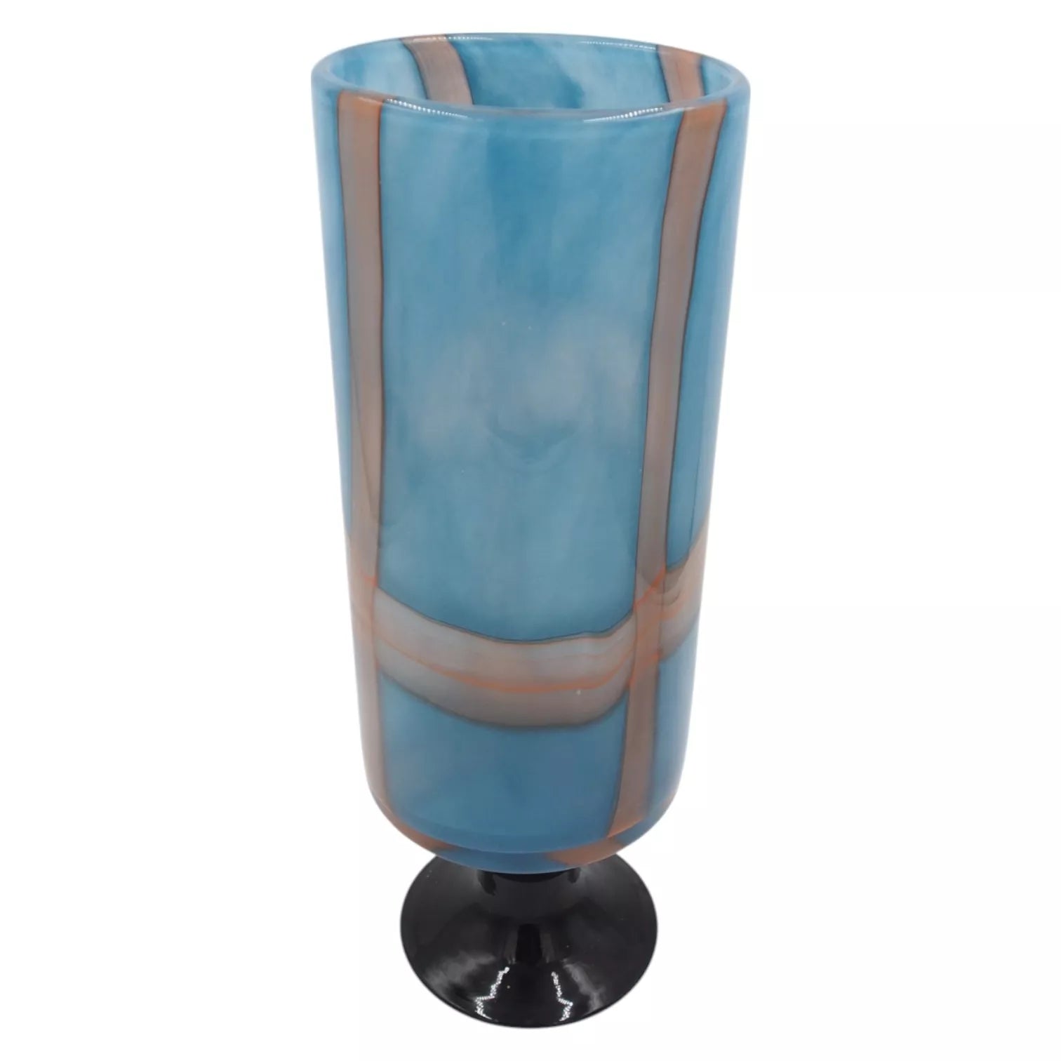 Išskirtinio dizaino stiklinė vaza su elegantišku pagrindu – puikus akcentas jūsų interjerui. Modernios violetinės spalvos su tamsiomis linijomis dekoras suteikia išraiškingumo, o tvirta konstrukcija leidžia naudoti tiek su gyvomis, tiek dirbtinėmis gėlėmis.