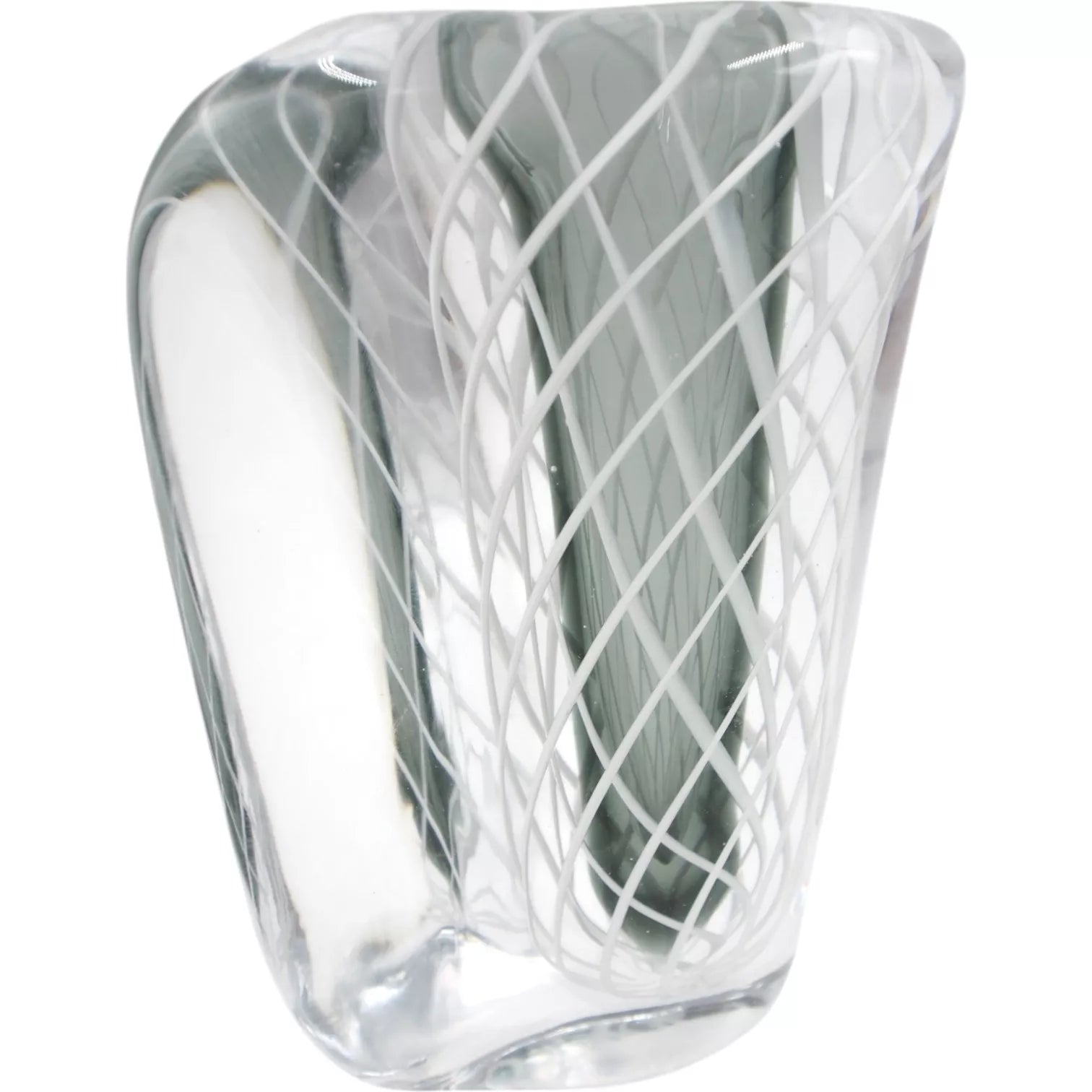 Moderni stiklo vaza su subtiliomis baltomis gyslomis – elegantiškas akcentas bet kuriuose namuose. Asimetriška forma ir skaidraus stiklo dizainas suteikia šiuolaikiškumo pojūtį, o švelnus dekoro raštas viduje sukuria vizualinį gylį. Puikiai tinka šviežioms gėlėms ar dekoratyviniam eksponavimui.