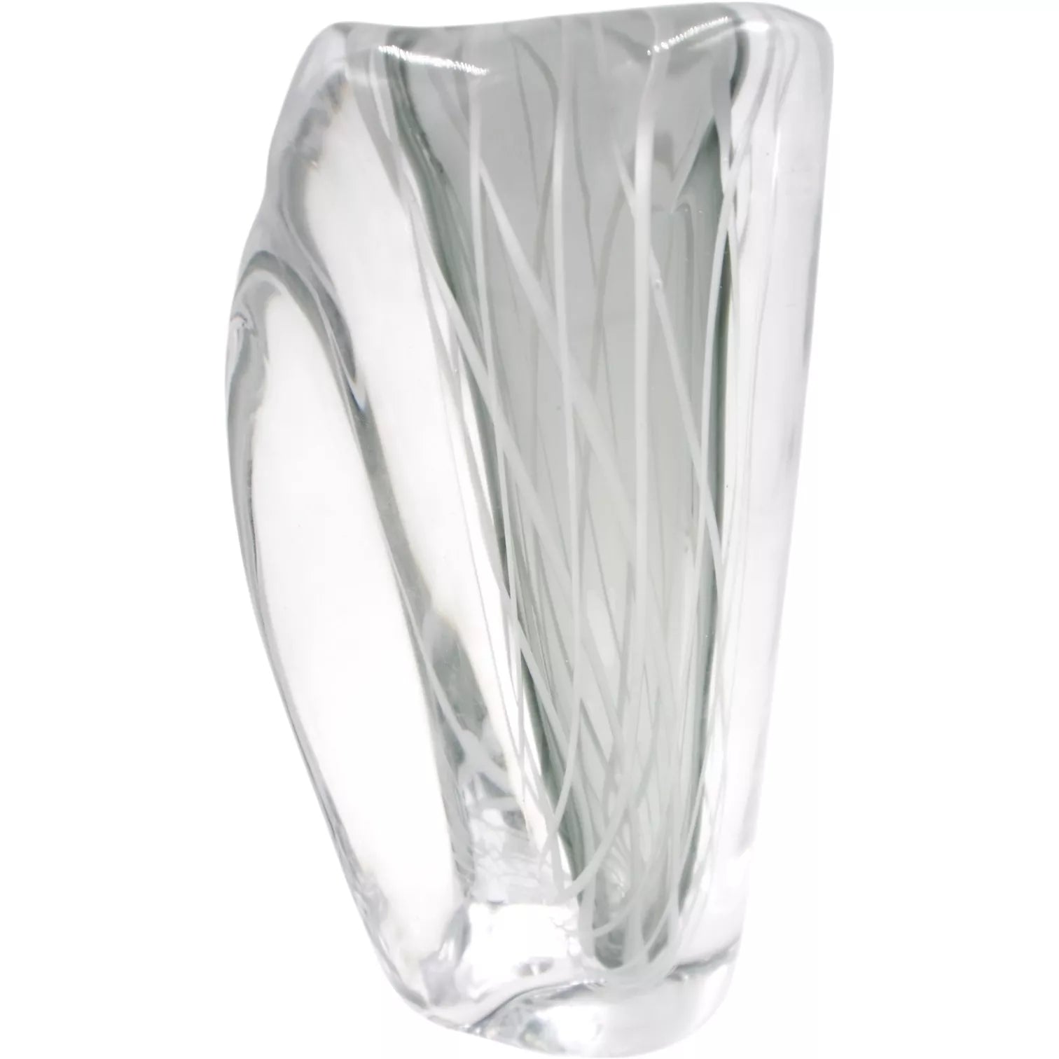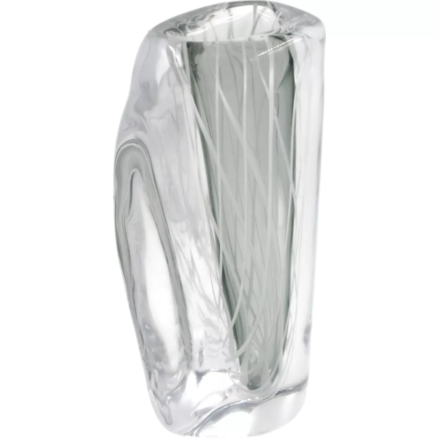 Moderni stiklo vaza su subtiliomis baltomis gyslomis – elegantiškas akcentas bet kuriuose namuose. Asimetriška forma ir skaidraus stiklo dizainas suteikia šiuolaikiškumo pojūtį, o švelnus dekoro raštas viduje sukuria vizualinį gylį. Puikiai tinka šviežioms gėlėms ar dekoratyviniam eksponavimui.