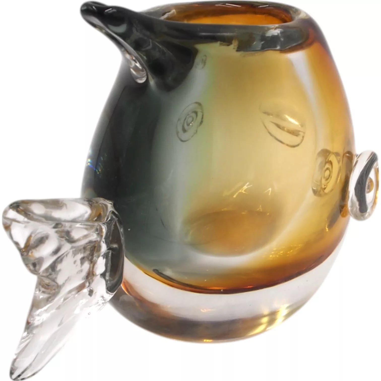 Išskirtinė, rankų darbo stiklinė žvakidė „Žuvis“ – tai dėmesį patraukiantis interjero akcentas, kuris ne tik skleidžia šviesą, bet ir žavi savo menine forma. Tamsaus gintaro, juodai pilkų ir skaidrių atspalvių derinys suteikia gaminiui paslaptingumo ir gylio. Žvakidės dizainas primena žuvį – su ryškiai išreikštomis uodega ir pelekais, todėl puikiai tiks ne tik klasikiniame, bet ir moderniame interjere.