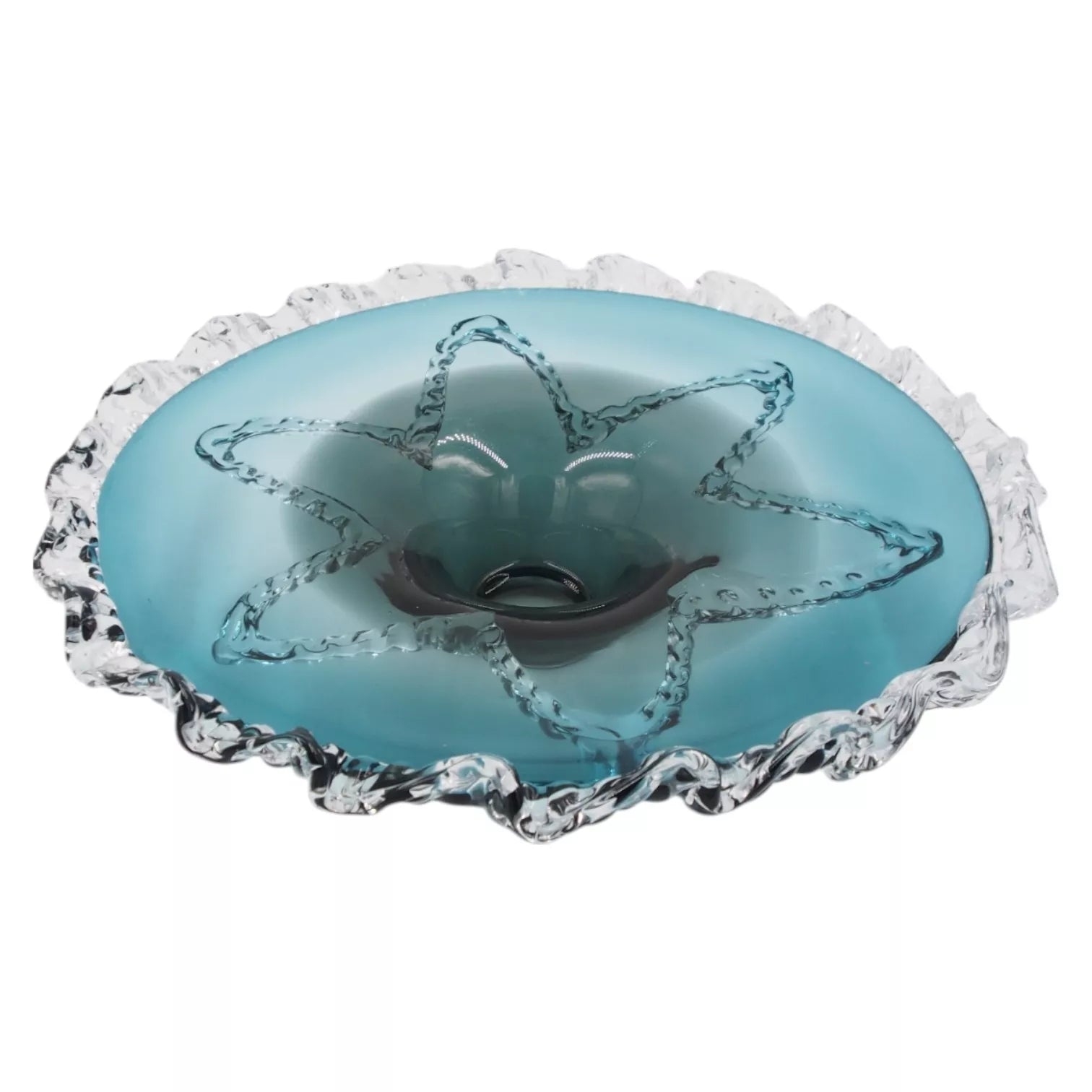 Modernus stiklinis dubuo – elegantiškas ir išskirtinis akcentas Jūsų namų interjerui. Permatomo stiklo ir žydro atspalvio derinys su unikaliomis formomis sukuria įspūdingą kompoziciją, kuri ne tik papuoš stalą ar komodą, bet ir taps traukos centru.