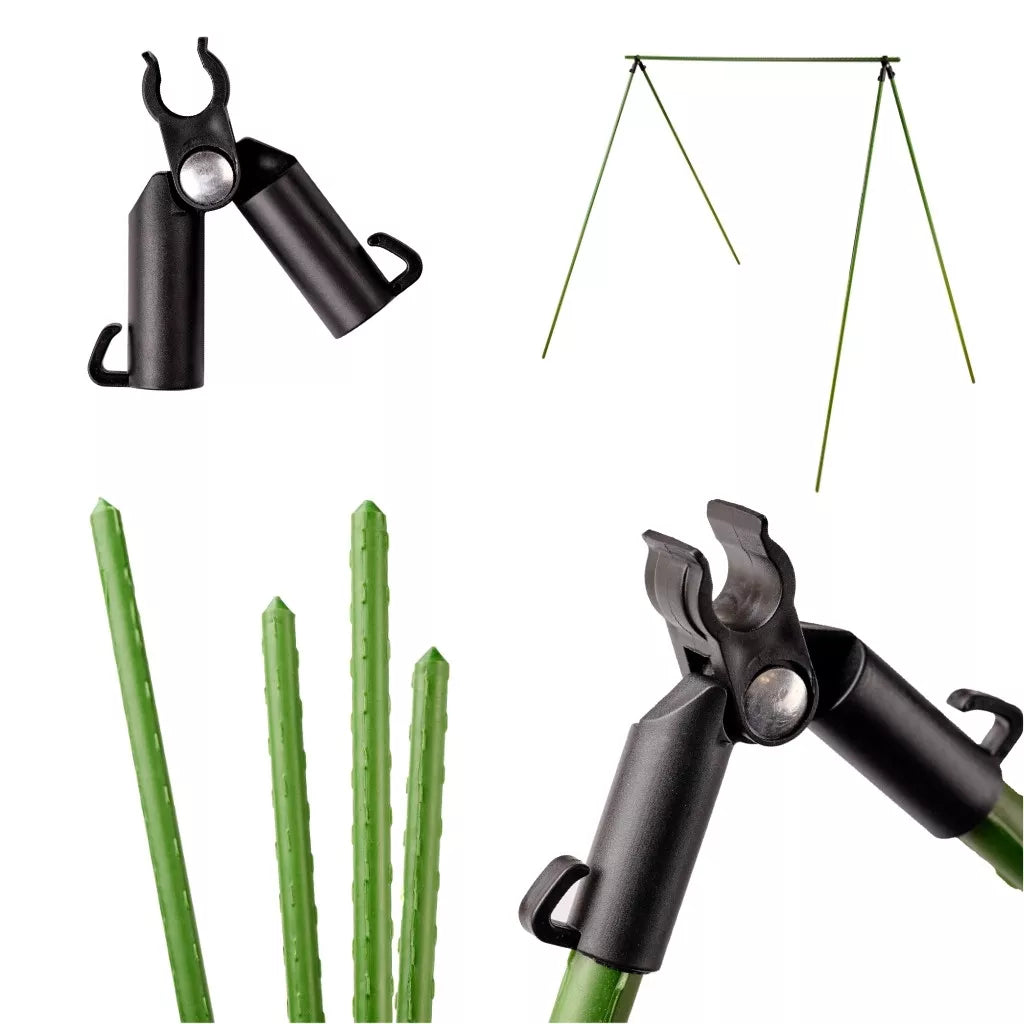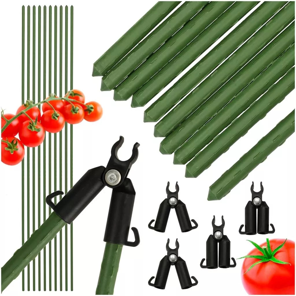 Pomidorų kuolukai yra praktiškas sodo priedas, kuris palaiko natūralų augalų augimą, suteikdamas stabilią atramą. Rinkinį sudaro 10 žalių 120 cm ilgio ir 1,1 cm skersmens kuoliukų, kurie puikiai įsilieja į sodo aplinką nepažeisdami jos estetikos. Pridedamos jungtys (4 dalys) leidžia statyti didesnes konstrukcijas, todėl jos yra universalus sprendimas ir kitiems vijokliniams augalams.