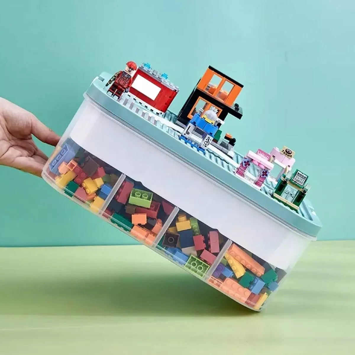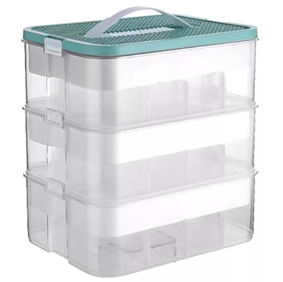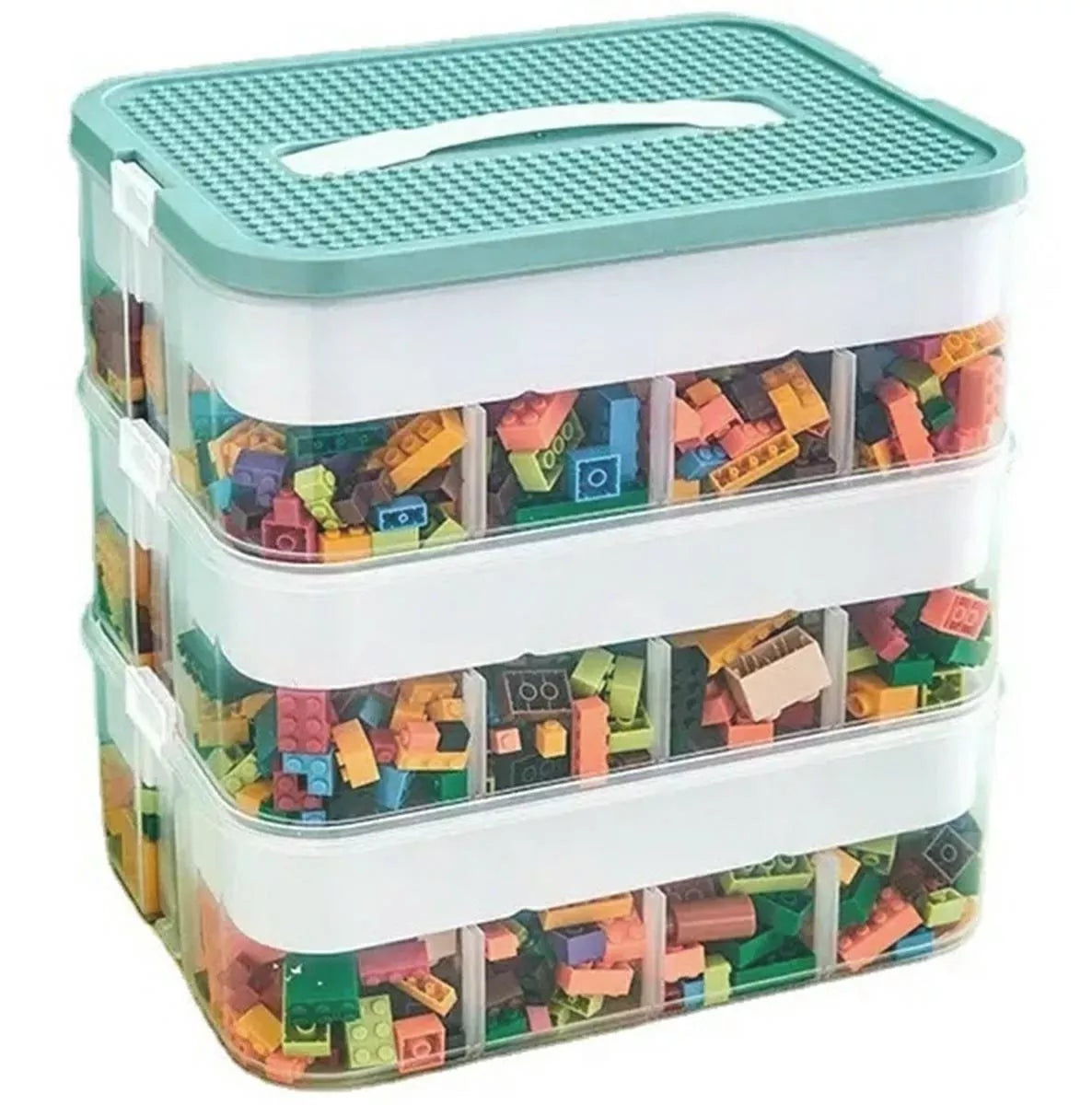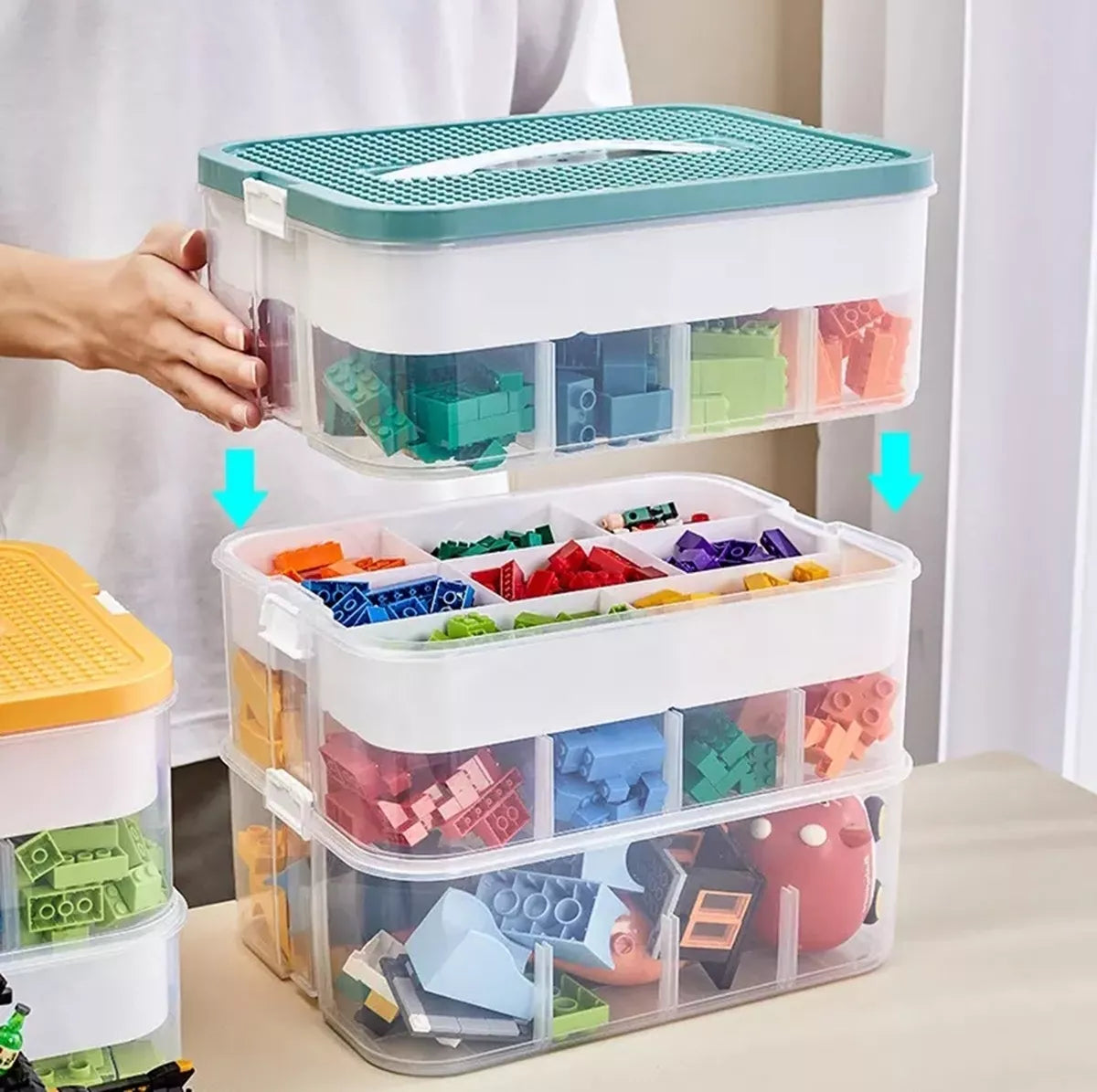 Patogus ir talpus organizatorius, padėsiantis palaikyti tvarką vaikų kambaryje. Jis turi net 3 išimamus aukštus su tvirtomis užsegimo sagtelėmis. Viršutinė dalis uždengiama dangčiu su patogia rankena, todėl dėžę lengva nešiotis. Kiekvienas aukštas turi atskiras pertvaras, leidžiančias patogiai rūšiuoti kaladėles, žaislus ar kitus smulkius daiktus.