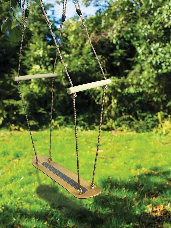 Sūpynės – riedlentė su neslystančiu kilimėliuGreenmill Kids sūpynės - riedlentė su neslystančiu kilimėliu.Jis skirtas naudoti namuose ir lauke. Patvari sėdynės medžiaga ir stori lynai leidžia saugiai naudoti sūpynes su apkrova iki 70 kg.Neslystantis kilimėlis sėdynės centre ir užapvalinti sėdynės kraštai papildomai padidina naudojimo saugumą.Dvi naudojimo padėtys: sėdėti ir stovėti - šoniniai mediniai strypai palengvina siūbavimą, taip pat ir stovint.Sūpynės atitinka Europos saugumo standartus: EN71-1, 2, 3, 8. Skirtos vaikams nuo 3 metų.SĖDYNĖS MEDŽIAGA modifikuota mediena (medinė fanera).FINISH lakas.MATMENYS 78 x 20 cm, storis 1 cmPE LYNĖ 10 mm, reguliuojama, maks. ilgis 2 x 1,8 m