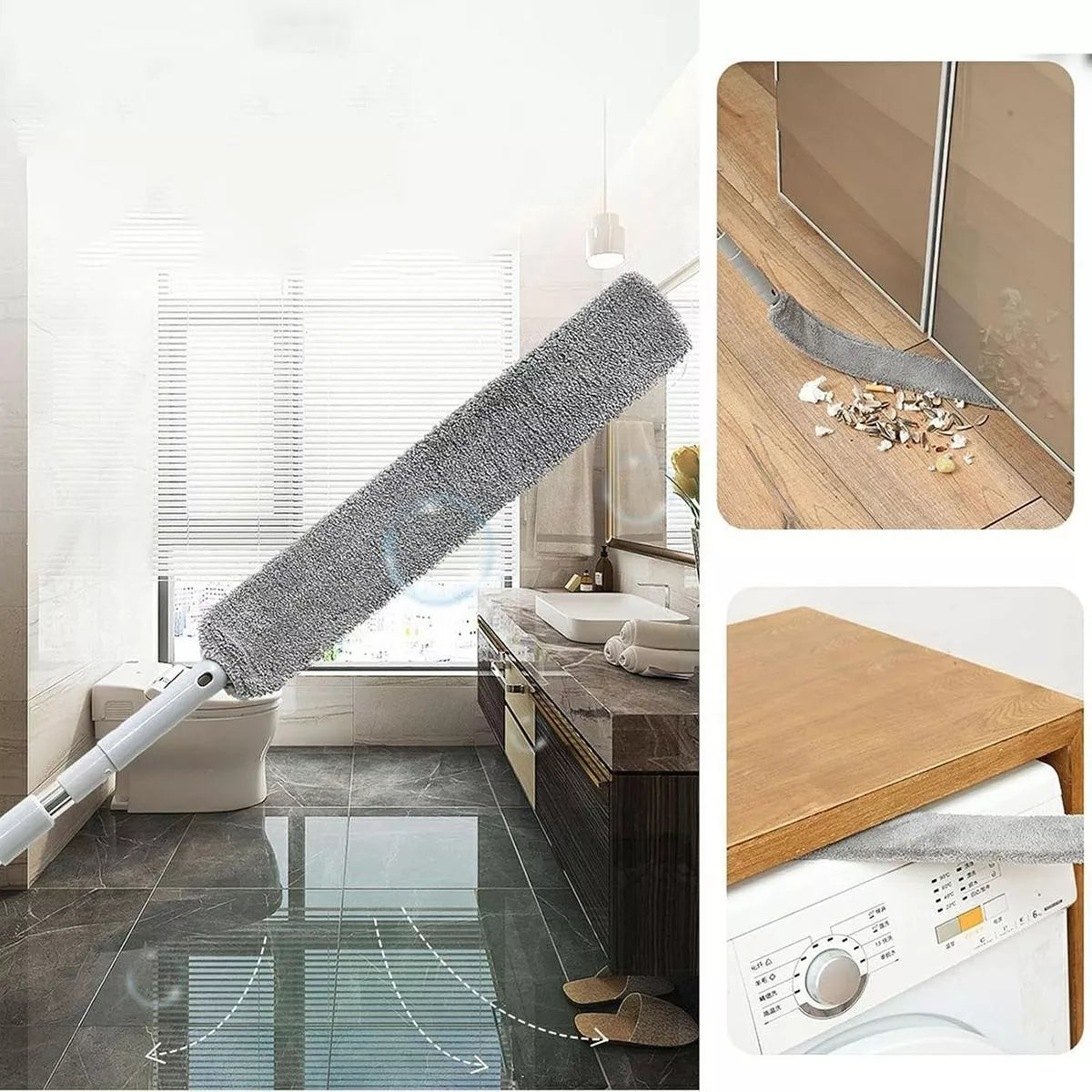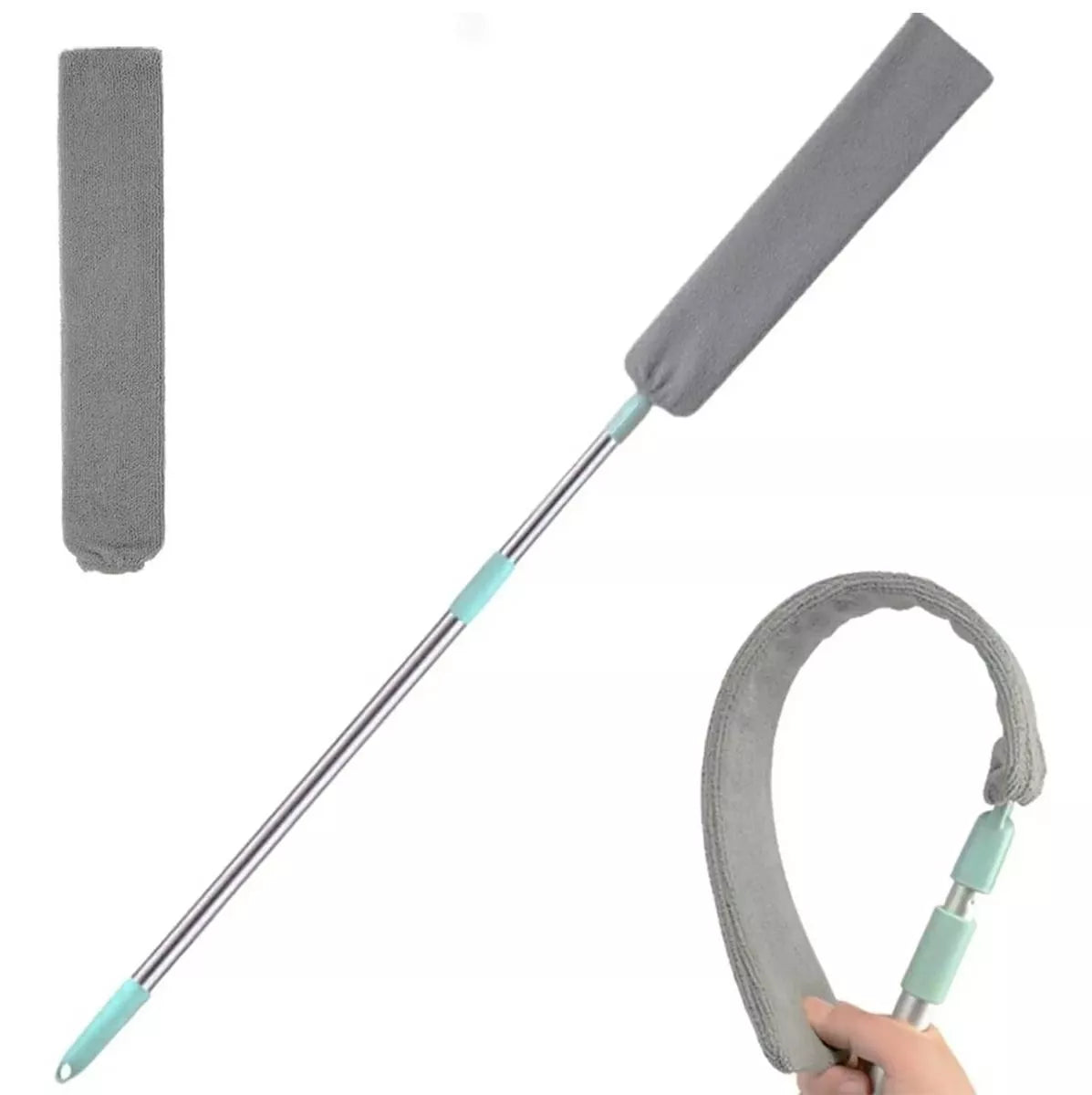 Ilga, teleskopinė dulkių šluotelė leidžia lengvai pasiekti sunkiai prieinamas vietas, pavyzdžiui, už baldų ar prie lubų. Mikropluošto galvutė efektyviai surenka dulkes, o patogus kabliukas leidžia ją pakabinti po naudojimo.