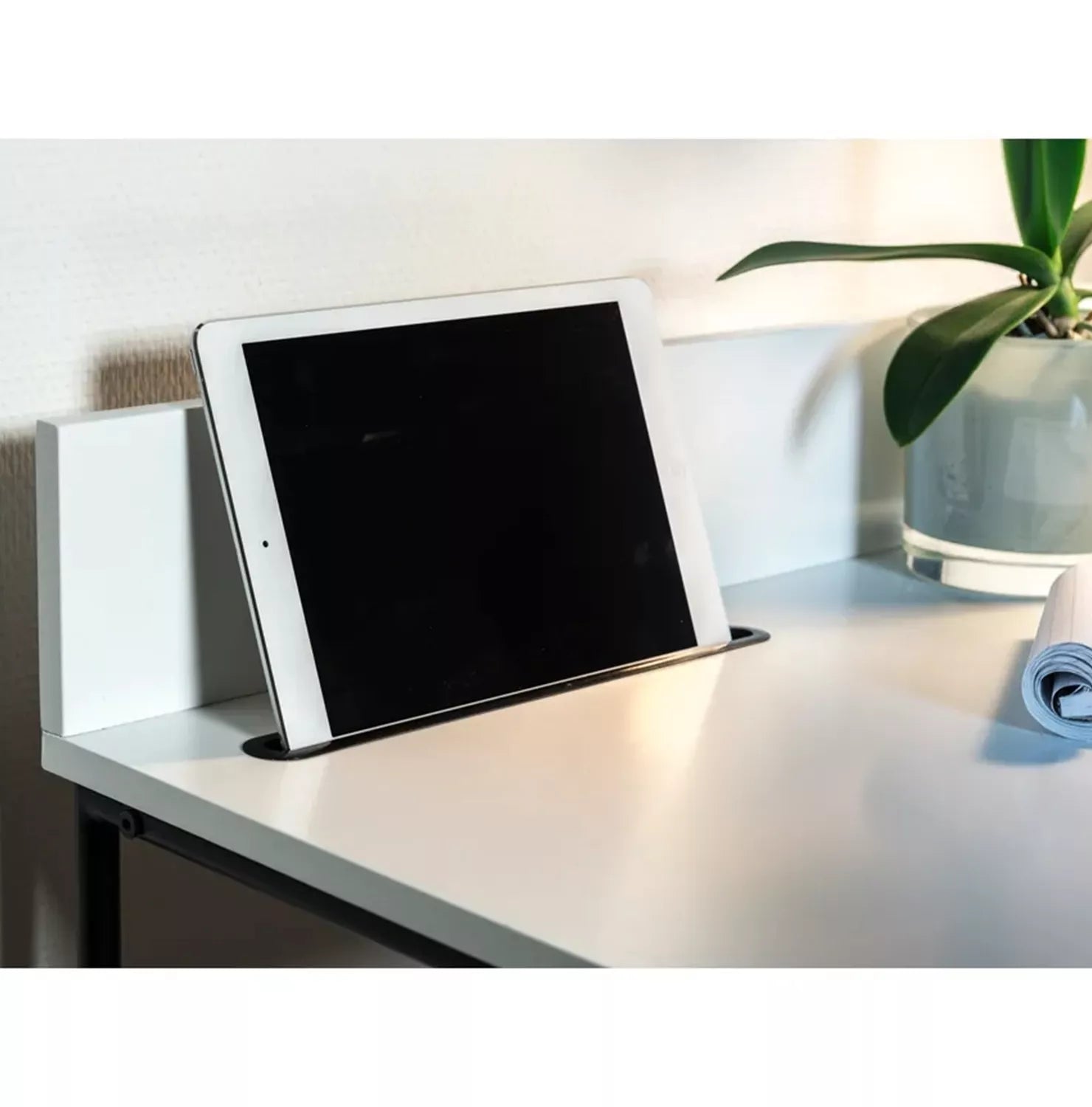 Minimalistinio dizaino TENZO stalas – puikus pasirinkimas tiek darbui, tiek mokslams ar namų biurui. Modernus baltos spalvos stalviršis derinamas su tvirtu juodo metalo rėmu, suteikiant interjerui lengvumo ir elegancijos. Stalviršyje įrengta praktiška vieta planšetei ar dokumentams laikyti.