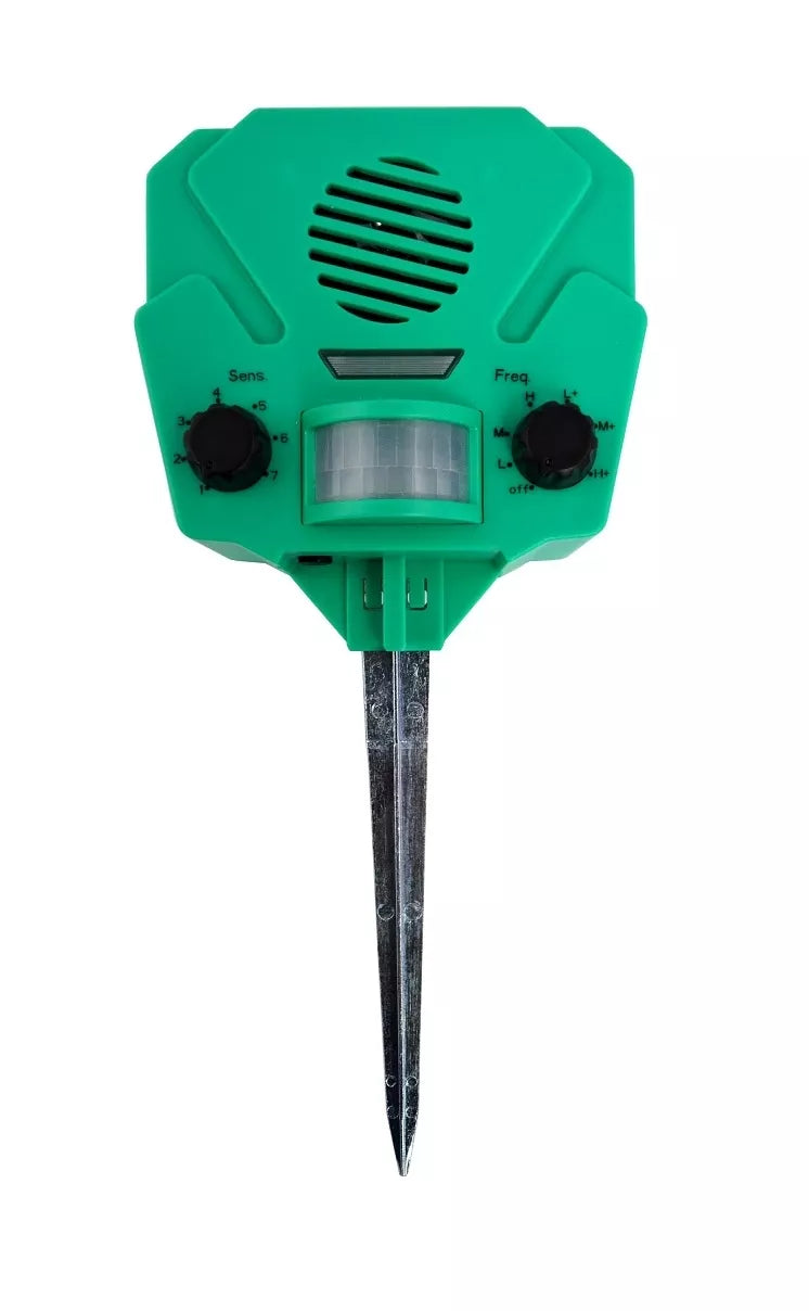 Atbaido kenkėjus humaniškai be cheminių medžiagų naudojimo.Beveik negirdimas žmoguiAukštos kokybės "Greenmill" gamintojo baidyklė.CE ir Rohs serfitikataiPlastikas atsparus saulės spinduliamsNekenksmingas žmonėms ir gyvūnams!Kintamojo dažnio Kontrolė.Judesio sensoriaus reguliavimas.Šviesos indikatorius, taip pat atbaido gyvūnus šviesa.Veikimo diapazonas lauke, iki 18m.Greitas montavimas .Maitinimas 4 x AA baterijos (nepridedamos)Atsparus drėgmei, galima naudoti lauko sąlygomisPrietaisas nekenkia kitiems buitiniams prietaisams.