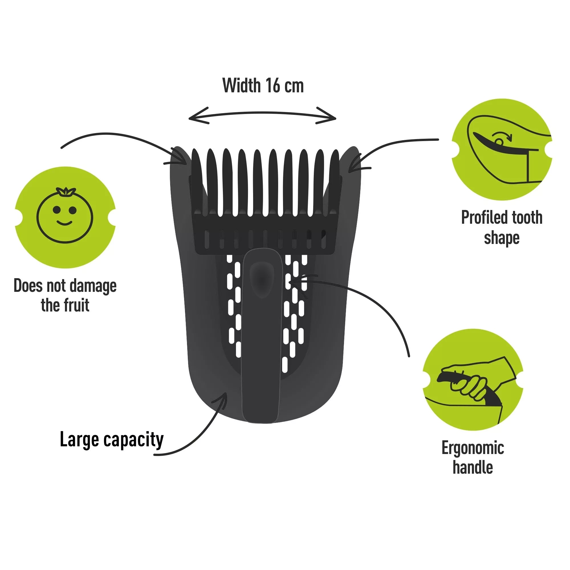Dirbkite profesionaliai ir pamirškite varginantį lankstymąsi ar uogų rinkimą po vieną. Pradėkite naudoti šį praktišką įrankį ir džiaukitės gausiu sezoninių uogų derliumi!