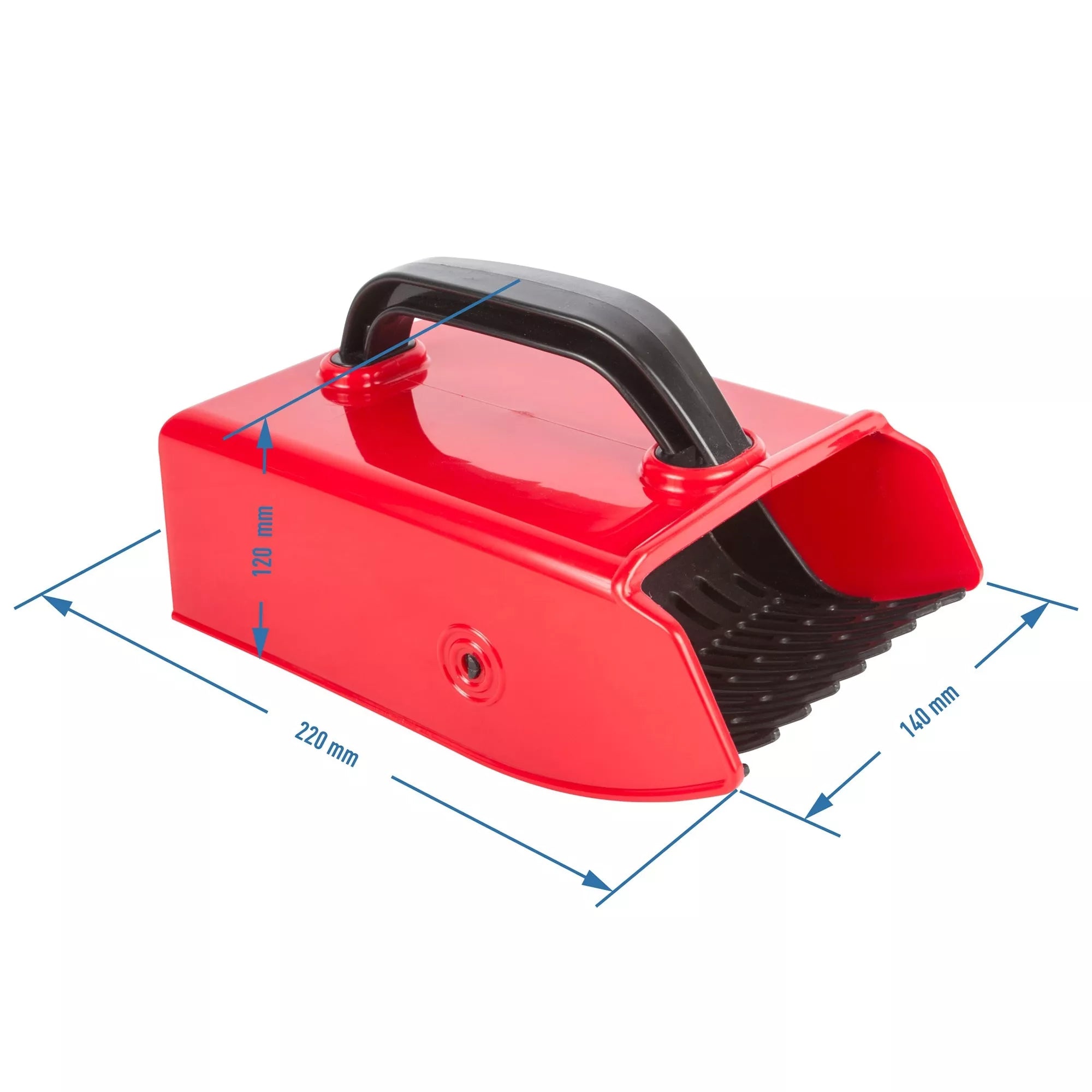 Jo kompaktiškas dydis – tik 21,7 x 13,7 x 12 cm – bei patogi rankena leidžia lengvai naudotis. Įrenginys išardomas į dvi dalis, todėl jį paprasta išplauti net ir sunkiai pasiekiamose vietose. Durų angos padeda atskirti uogas nuo lapų ir kitų nešvarumų. Šukos yra itin lengvos, todėl jas galėsite pasiimti su savimi į kiekvieną išvyką į mišką!