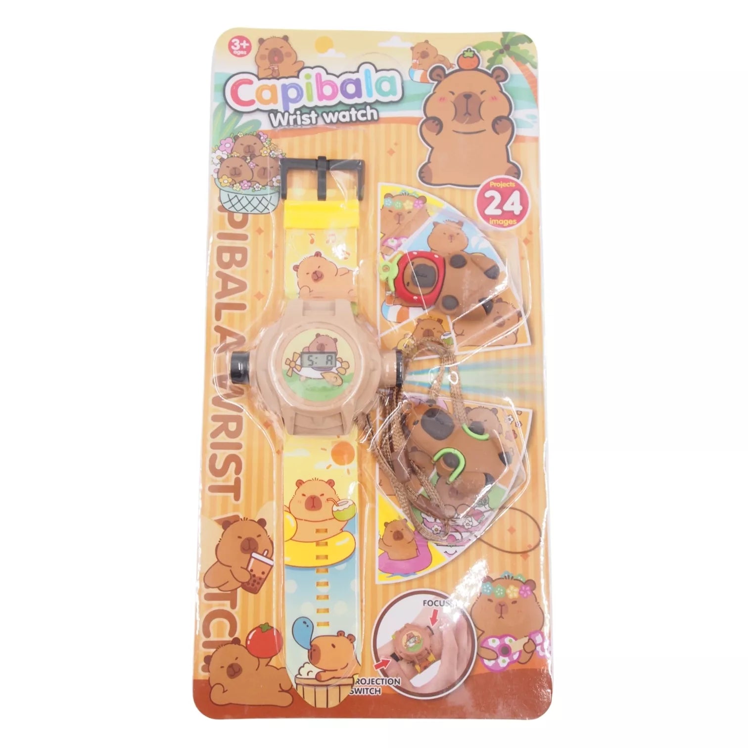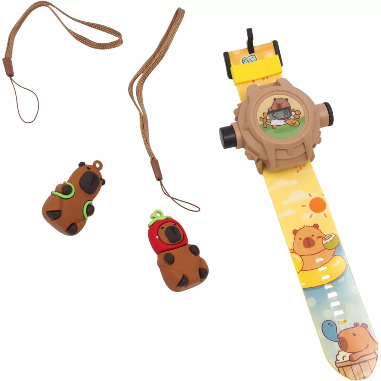 Vaikiškas laikrodis su projekcija „Capibala“ + pakabukai