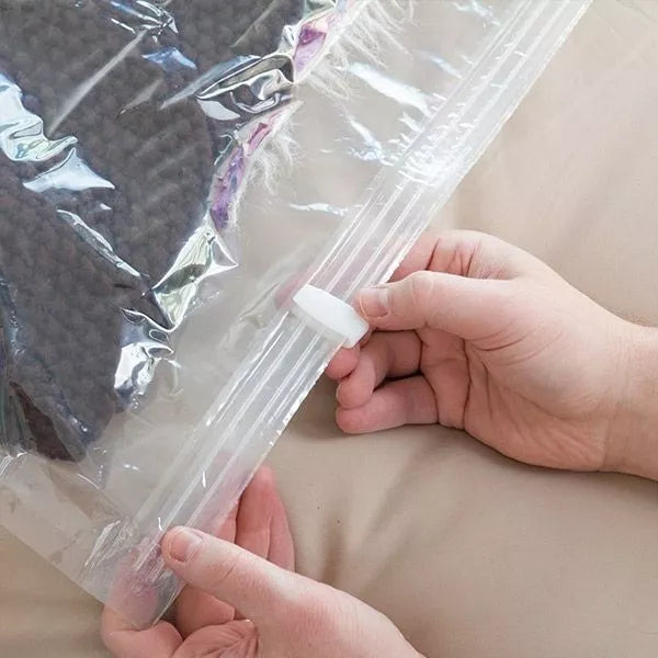 Vakuuminius maišus naudoti labai paprasta. Tereikia į juos sudėti norimus daiktus ir per specialiai įrengtą ertmę išsiurbti orą. Tam tiks bet kuris buitinis dulkių siurblys.