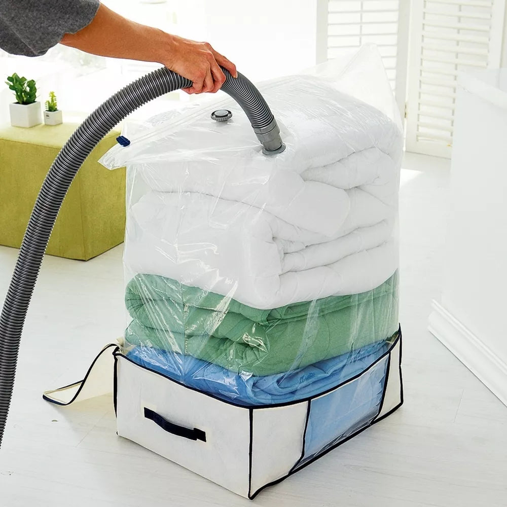 supakuoti drabužiai, patalynė ir kiti daiktai bus apsaugoti nuo purvo, kenkėjų, drėgmės, saulės bei oro sukeliamo neigiamo poveikio;Išmatavimai: 70X100CMSumažina užimama vietą iki 75%vakuuminiai maišai yra daugkartinio naudojimo ir laikyti juos galima bet kur, kur tik rasite vietos;sutaupo daugiau nei keturis kartus užimamos vietos;išlaiko švarius ir gaivius daiktus, apsaugodami juos nuo bakterijų ir vabzdžių;vakuuminis maišas pagamintas iš patvaraus plastiko.