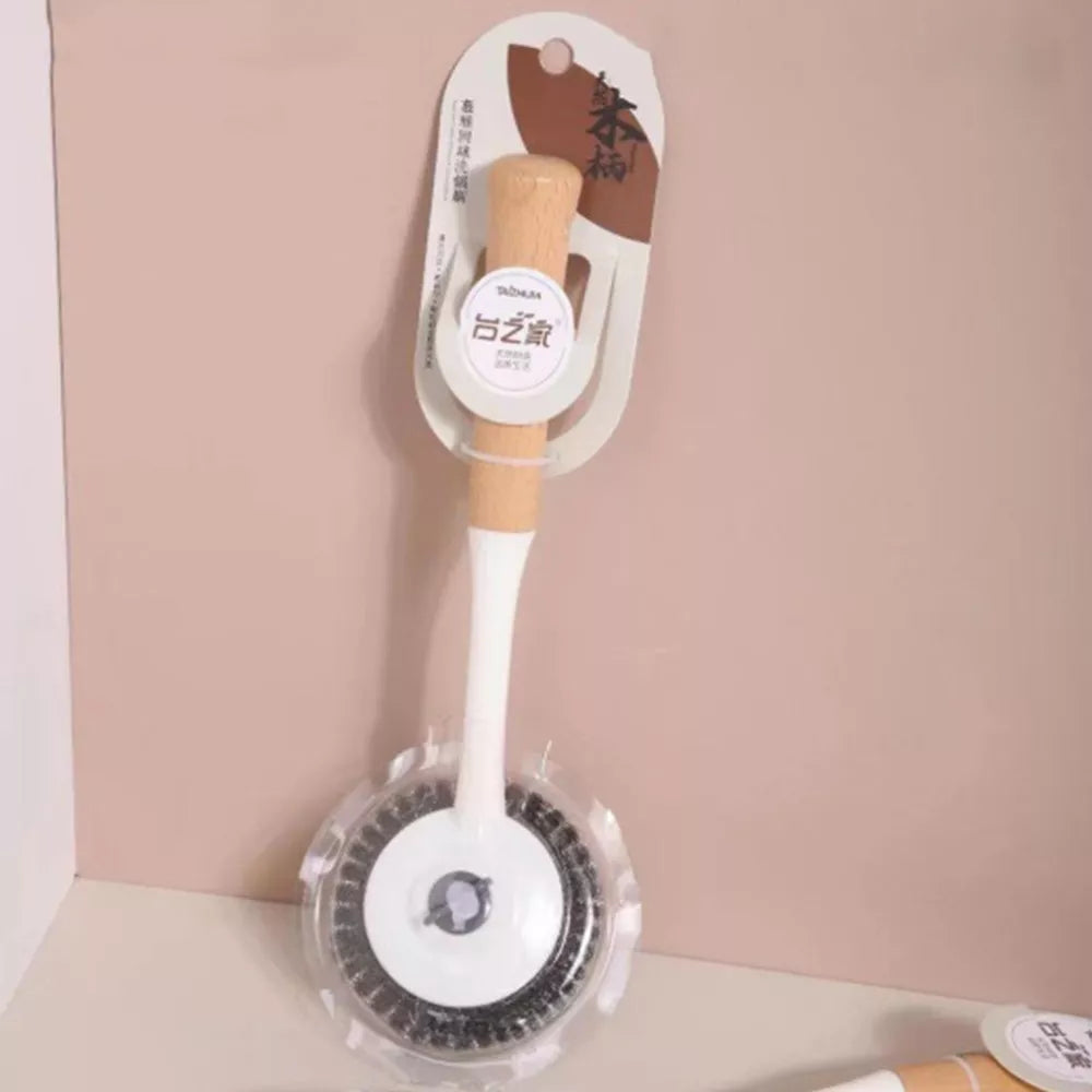 Valymo šepetėlis TR1609B su metaline kempine ir medine rankena