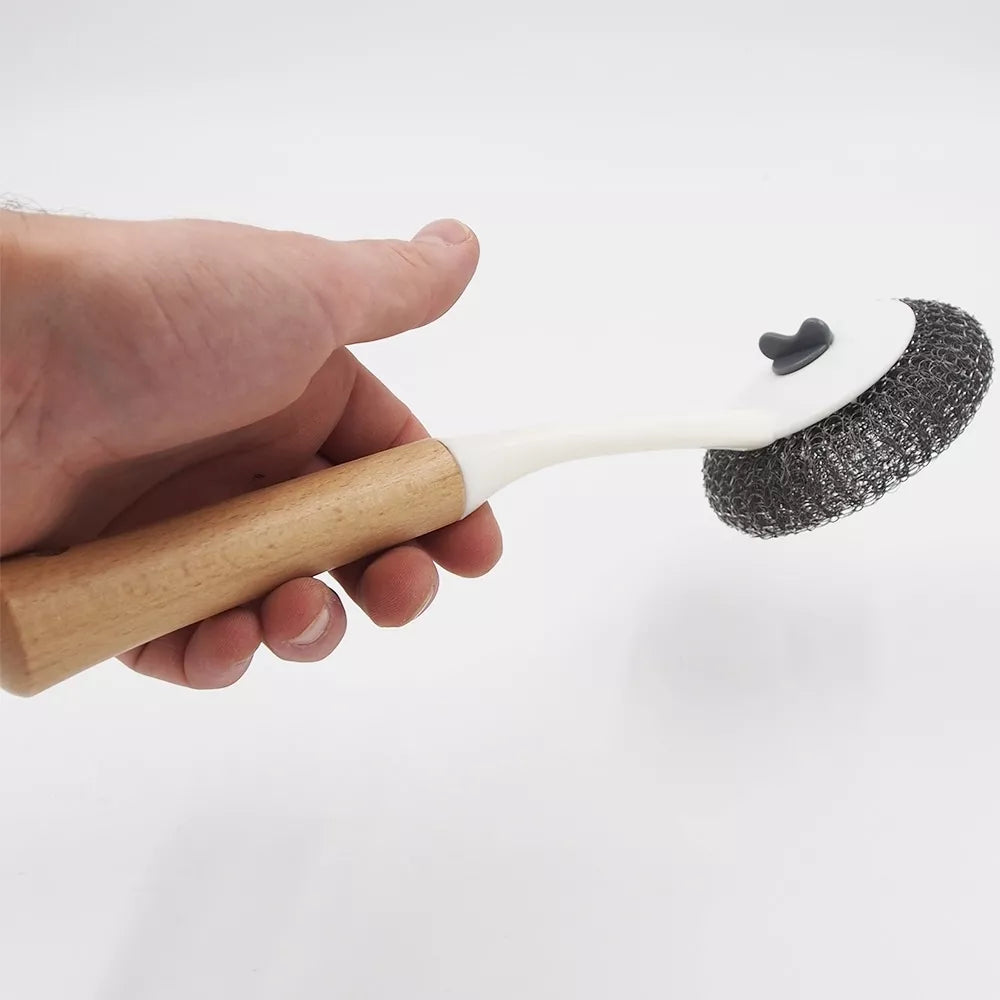 Metalinė kempinė: efektyviai pašalina sunkiai įveikiamas dėmes ir nešvarumus.Medinė rankena: suteikia patogumą ir leidžia ilgiau dirbti nesukeliant nuovargio.Universalus naudojimas: tinka indams, virtuvės paviršiams, bei kitoms namų valymo užduotims.Ilgaamžis dizainas: tvirtas konstrukcija užtikrina, kad šepetėlis tarnaus ilgai.Kempinės laikiklis atsisuka ir susidevėjusią kempine galima pakeisti į kitą.Naudojimas: Puikiai tinka kasdieniam namų naudojimui, valant virtuvės indus, keptuves ir kitas sunkiai valomas vietas.