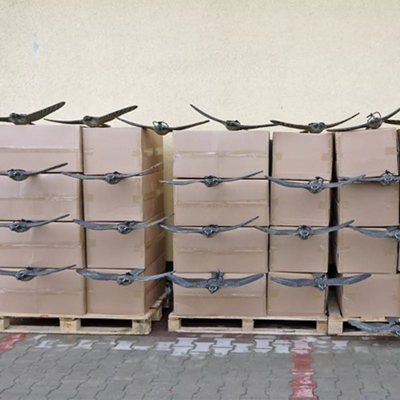 Veiksmingai atgraso paukščius bei mažus žinduolius. Pagaminta iš labai patvaraus plastiko, atsparaus nepalankioms oro sąlygoms ir UV spinduliams. Tiksliai imituoja tikrą plėšrūną - tiek išvaizda, tiek dydžiu. Dėl savo konstrukcijos statulėlė gali būti pakabinta bet kurioje vietoje. Šis humaniškas ir aplinkai nekenksmingas paukščių atgrasymo metodas dažnai naudojamas kartu su garso atgrasymo sistema. Dėl šio derinio atgrasymo efektyvumas yra dar didesnis.
