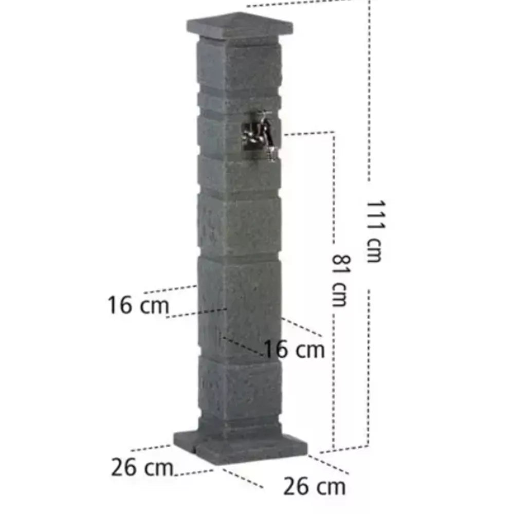 Elegantiška vandens kolonėlė taps tikra Jūsų kiemo ar sodo puošmena. Akmens imitacijos vandens kolonėlė pagaminta iš aukštos kokybės plastiko, kuris puikiai prisitaiko prie įvairių oro sąlygų.