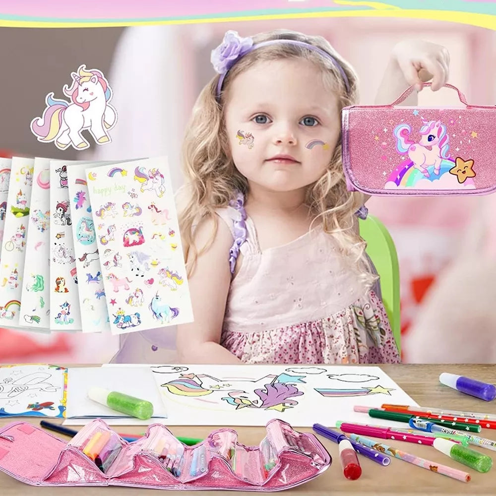 Vienaragio Piešimo Rinkinys Vaikams – 45 Spalvų Komplektas su Dailia Dėžute ir Lipdukais