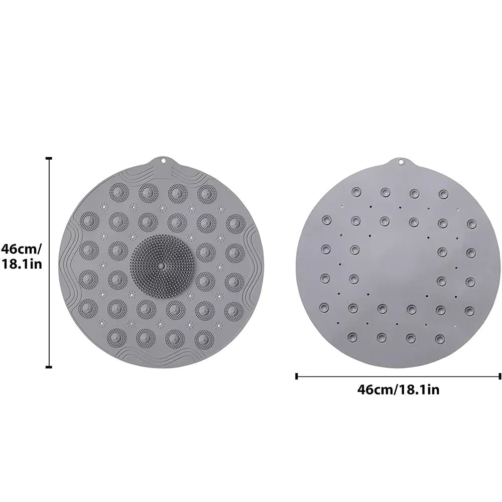 Dušo pėdų ir nugaros šveitimo kilimėlis.Valymo kilimėlis turi unikalų dugno siurbtukų dizainą, kuris tvirtai sukimba su žeme ar dušo sienomis.Šveitiklis yra pagamintas iš aukštos kokybės medžiagų. Kilimėlio šereliai minkšti ir patogūs, nesunkiai deformuojami ir gali būti naudojami daugelį metų.Pėdų šveitimo kilimėlis pagamintas iš daugiau nei 1000 minkštų silikoninių šerių, kurie, susilietus su muilu, sukuria sodrias putas, greitai nuvalo nešvarumus ir odeles nuo pėdų bei masažuoja pėdų padus.Techninai duomenys::